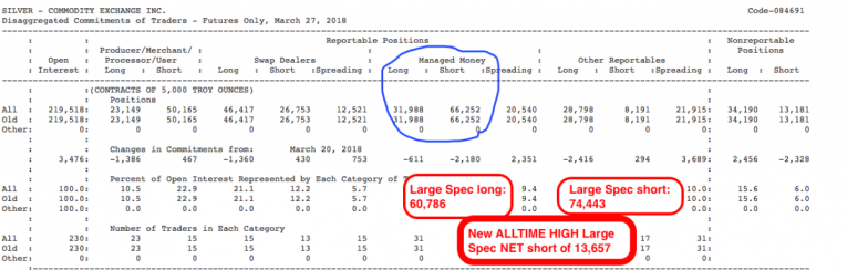 April 20, 2017 was a Thursday. This means that two days earlier, with Comex silver OI at 227,984 and price at $18.40, there was a CoT survey. And what did this CoT show last year?