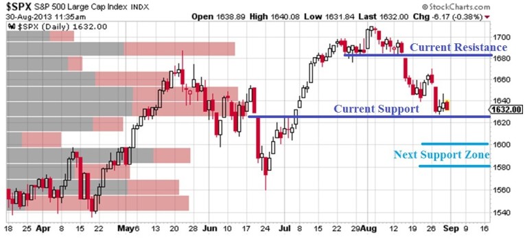 Unlike many market prognosticators, I will tell readers when I was wrong, when I was right, and when I was close. On August 16th I called for a bottom to play out around 1650 and I was close. The bottom was actually formed intraday on August 21st. The forthcoming bounce rallied roughly 30 points before reversing back to the downside to our next support level around 1630.