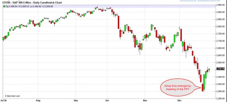 So, back to late 2018...What occurred then that has pushed gold and silver prices higher ever since? Simply put, the final change in Fed policy. For the five years between 2013 and 2018, The Fed was able to support an illusion. And what was that? That all was well. That their balance sheet would be reduced back to pre-2009 levels and that interest rates would soon head back to historical norms, too. The Fed was able to pretend that this was the case until, finally, their beloved "stock market" broke under the pressure of a contracting money supply. Do you recall December 2018? Have you already forgotten? It was so bad that Treasury Secretary Mnuchin had to convene an emergency meeting of The President's Working Group On Financial Markets—AKA "The Plunge Protection Team".