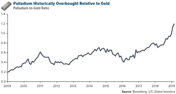 As such, the palladium-to-gold ratio—or the measure of how many ounces of gold can be purchased with one ounce of palladium—is now at an historical high.
