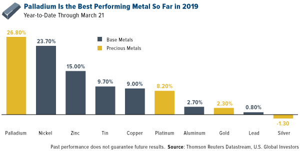 Palladium is the best performing metal so far in 2019, up nearly 27 percent. In second place is nickel, which is facing supply issues of its own. Global demand for nickel in 2019 is estimated at around 2.4 million metric tons, two thirds of which will be processed in stainless steel mills, mostly in China, according to Reuters.
