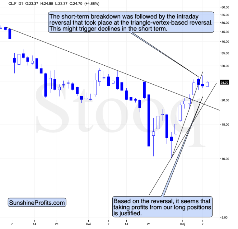 However, we also wrote that based on the triangle-vertex-based reversal, , we’re likely to see some kind of reversal on Thursday or Friday, and given the current momentum, it seems likely that it will be a top.