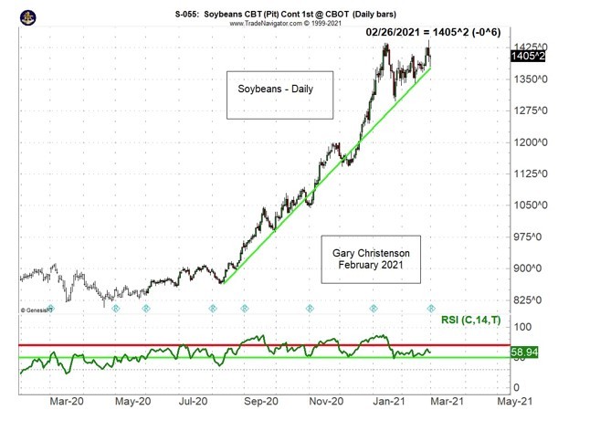 • Look at the prices of soybeans, corn, crude oil, and silver since March 2020, and observe their price rises.