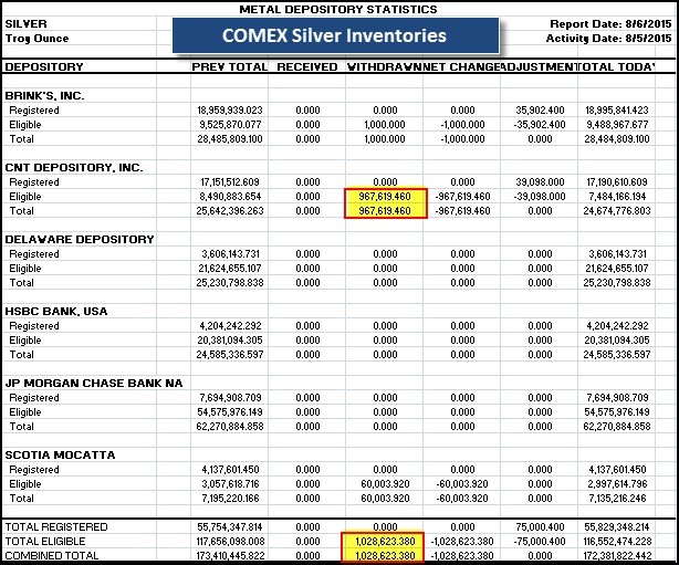 Here is the lasted COMEX Silver Inventory update: