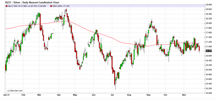So, for now, the point of this is simple. While we expect US dollar weakness to prompt a decent year for silver and all metals and commodities in 2018, until Comex silver can break free of the Bank shackles at the 200-day moving average, price will remain stuck in neutral. This will have an impact on mining share prices, too. Consequently, anyone interested in the sector should be sure to watch silver's 200-day moving average all through the month of December.