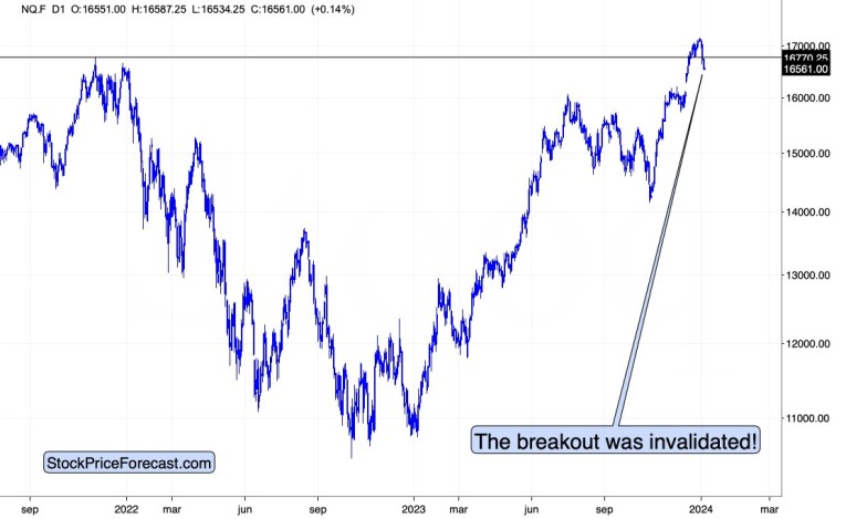 The breakouts to new all-time highs in both the S&P 500 and in the tech stocks were invalidated, which served as major sell signals. As a reminder, while breakouts generally need to be confirmed, for example, by three consecutive closes above a certain price level, invalidations of breakouts serve as immediate sell signals. No wonder that Paul just took profits from his long positions.