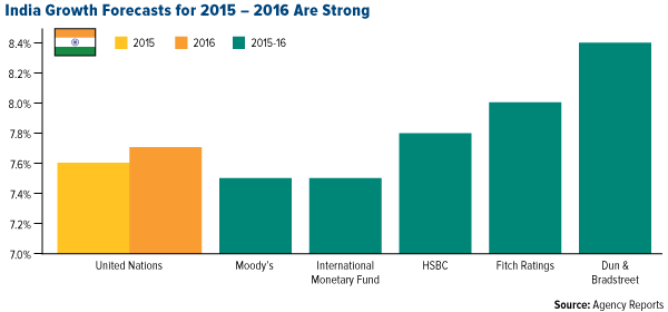 Looking ahead, analysts forecast that India’s economy will expand between 7.5 percent and 8.5 percent for the 2015 and 2016 fiscal years, faster than any other G20 nation, including China.