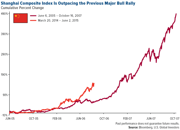 When we compare this trading cycle with the previous major rally that occurred from June 2005 to October 2007, we see that the run-up has plenty of room to climb higher.