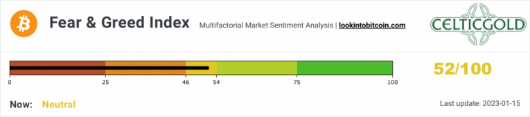 Crypto Fear & Greed Index, as of January 15th, 2023. Source: Lookintobitcoin