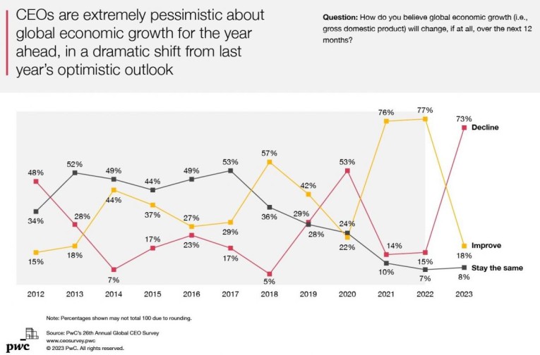 PwC’s 26th annual Global Survey, January 16th, 2023. Source: Holger Zschaepitz