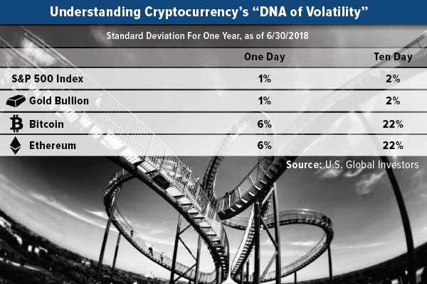 Keep in mind, though, that we’re still very early in crypto investing. It was only 10 years ago that the mysterious Satoshi Nakamoto wrote the now-famous whitepaper that led to the creation of bitcoin. Volatility is still roughly six times as high as large-cap stocks and gold in a single trading session, and 11 times as high in the 10-day period. As I told Market One Media recently, the space remains speculative, but there are opportunities for tremendous upside.