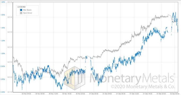 Unlike gold, the price of silver is back up to what it was at the start of last week. The basis was 1.75% at that time. Now, it’s under 1.6%. So unlike gold, silver is slightly scarcer and it’s back to the same price.