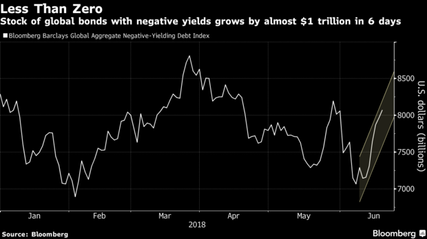 At its peak in 2016, there was a total of over $14 trillion worth of global sovereign bonds with a negative yield—mostly in European and Japanese debt. And even though that total has decreased recently, it is still above $8 trillion.