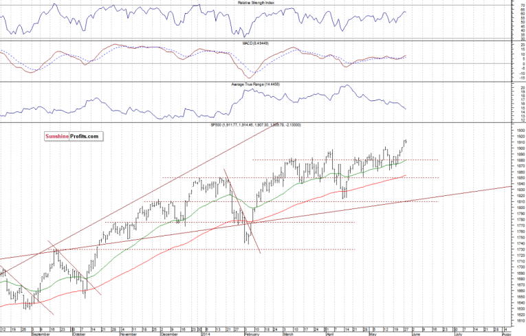 The U.S. stock market indexes lost 0.1-0.3% yesterday, retracing some of their recent rally, as investors took profits. However, the S&P 500 index has managed to reach yet another new record high at 1,914.46. The nearest important support level is at around 1,880-1,900, marked by previous resistance. There have been no confirmed negative signals so far, as we can see on the daily chart: