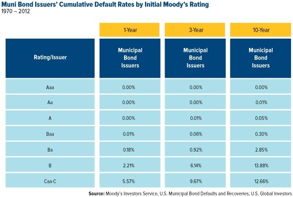 But there’s nothing sexier than money, which is exactly what NEARX seeks to preserve through a diversified portfolio of high-quality munis with relatively short maturities. As you can see below, the higher the bond rating, the less likely it is for the issuer to default. Eighty percent of NEARX’s holdings fall into one of the four highest ratings.