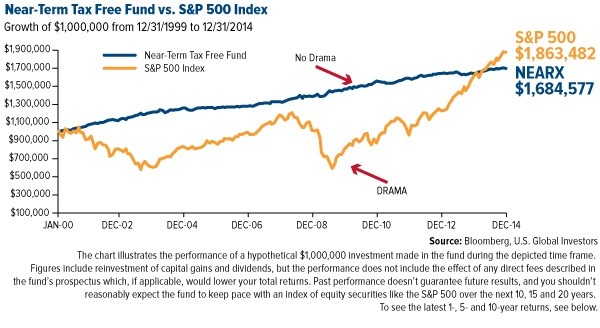 Although we can’t guarantee how the fund will perform in the future, NEARX has historically shown a greater likelihood of dodging the dramatic swings and volatility in the equities market, similar to the ones we experienced during the first decade of the century—the dotcom bubble, for instance, and the Great Recession. And there will be times, of course, when products such as an S&P 500 index fund will strongly outperform NEARX.