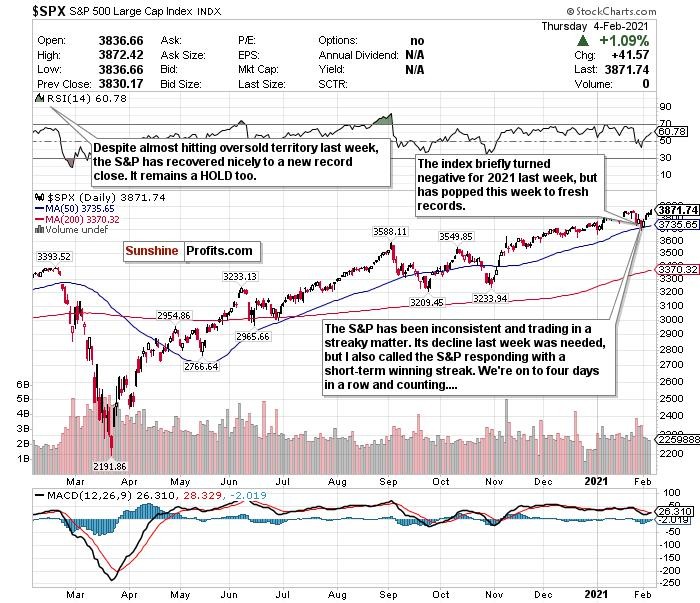 After declining in two of the last four weeks, the indices haven't seen a single down day all week. If Friday (Feb. 5) futures stay the same, we might not have a down day all week.