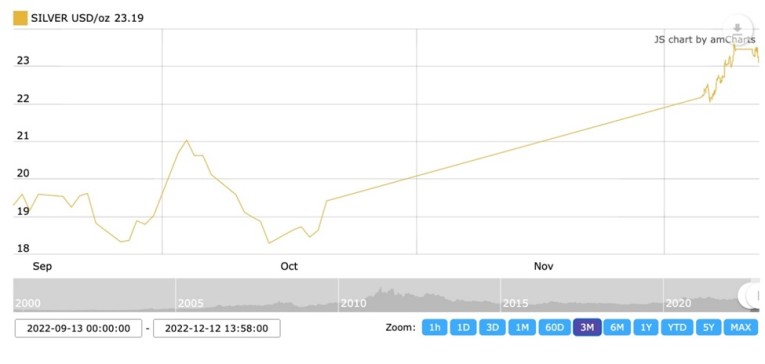After Russia’s invasion of Ukraine earlier this year, the flight to safety subsequently sent silver prices past the $26/oz mark, which was last seen in August, 2021.