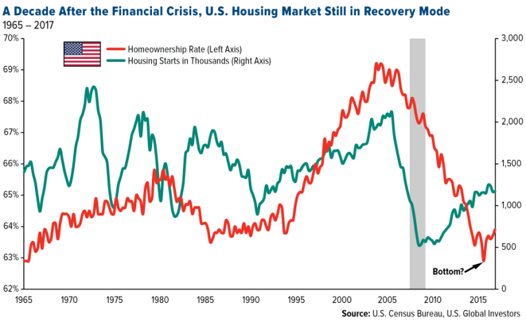 In its November report, mortgage security firm Freddie Mac called 2017 the “best year in a decade” for the housing market by a variety of measures. These include low inflation, strong job growth and historically-low mortgage rates. This assessment is very encouraging, not just for homebuyers and builders and the U.S. economy in general, but also for commodities, resources and raw materials as we head into 2018.