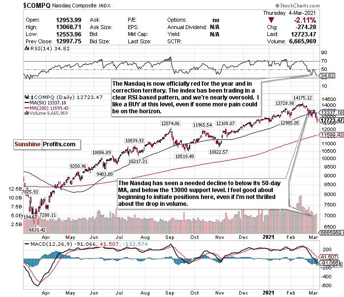 The Nasdaq is finally in correction territory! I have been waiting for this. It’s been long overdue and valuations, while still frothy, are much more buyable. While more pain could be on the horizon until we get some clarity on this bond market and inflation, its drop below 13000 is certainly buyable.