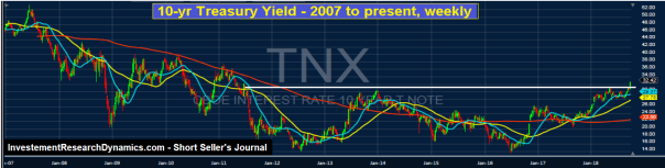 More likely, yields are soaring on the long end of the curve (10yrs to 30yrs) because it was quietly reported that the amount of outstanding Treasuries jumped by $1.25 trillion in the Government’s 2018 Fiscal Year (October thru September). This means that the Government’s spending deficit soared by that same amount during FY 2018. To make matters worse, the Trump tax cut will likely cause the spending deficit – and therefore the amount of Treasury issuance required to cover that deficit – to well to north of $1.5 trillion in FY 2019.