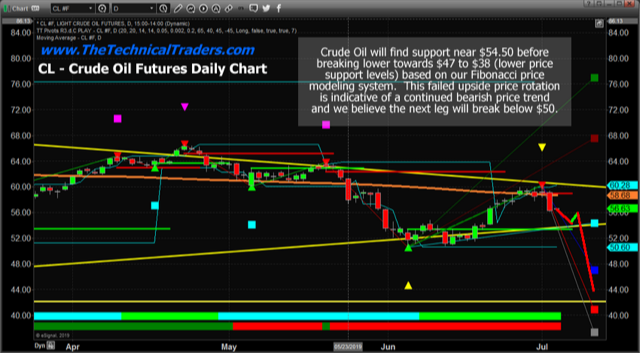Our researchers believe the technical reason why Crude Oil will continue lower is that price rotation has continued to support a downside price trend (Bearish) and that recent price resistance near the upper price channel has been rejected. This is a near perfect example of how the Fibonacci price theory works in real markets. The price must always attempt to establish “new price highs” or “new price lows” AT ALL TIMES.