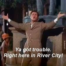 The message of the tune "Ya Got Trouble" is akin to the proverb "idle hands are the devil's workshop," i.e. when people are bored or complacent, they get into Trouble.