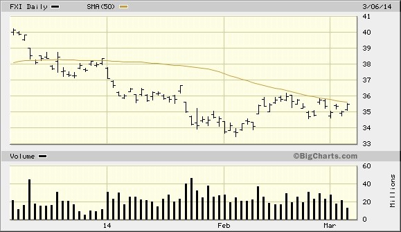 Aside from the potential spillover impact of Russia’s stock market decline, an even bigger concern as we head into spring is China’s stock market. The iShares China Large Cap ETF (FXI), our favorite China proxy, is struggling to get back above its 50-day moving average. It’s also dangerously close to its recent low from early February. A violation of the February low would almost certainly touch off another wave of investor concern over China’s economic outlook and could have spillover impact on U.S. equities later this year after the melt-up phase of the bull market is complete. There has been an historical correlation between FXI and the S&P in recent years, with China stock weakness leading to U.S. market weakness more often than not.