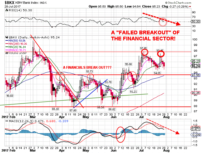 The loss of the leadership in the banking and financial sector (BKX ETF) is now a major warning signal, which is what is required in order to move the SPX much HIGHER at this time!