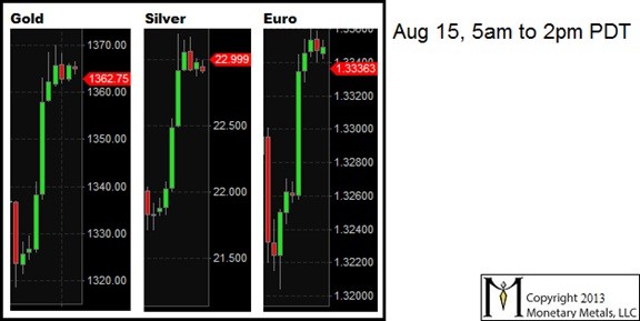 With futures, if you intend to take delivery and pay cash for the metal, you hold the contract until it is replaced with title to the metal held in a COMEX vault. If you do not wish to take delivery or if you don’t have the cash (most futures traders use leverage), then you must sell the contract before First Notice Day. If you want to keep a long position in the metal, you can buy the next liquid contract month (currently December). First Notice Day of the September contract is August 30. As of Friday, around 38% of those who had September contracts have sold them, and the rate of selling is accelerating (it will peak this week).