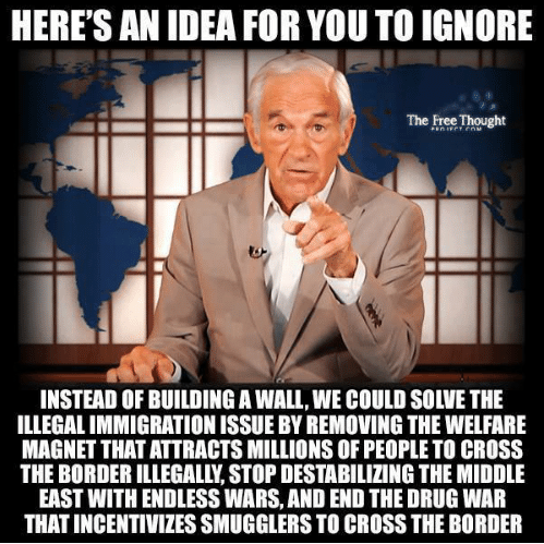 “… end the US military empire overseas, cut taxes and regulations at home, end the welfare magnet for illegal immigration, and end the drug war. And then get out of the way.”