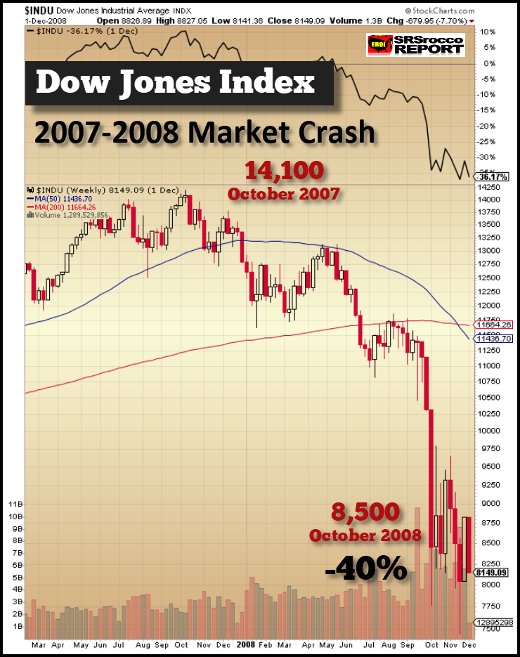 Even though the Dow could move higher, and even surpass its previous high of 26,600, the leverage is still too extreme to allow the index to move up considerably from here. In the video, I show how the Dow Jones Index had three peaks and declines before it sold off in 2008. Thus, the index did not fall in a straight line, and it took nearly a year from the peak before the crash took place: