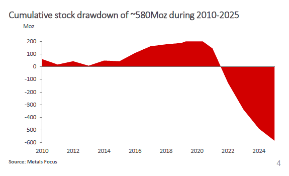 Since 2010, the silver market has accumulated a supply deficit of over 580 million ounces.