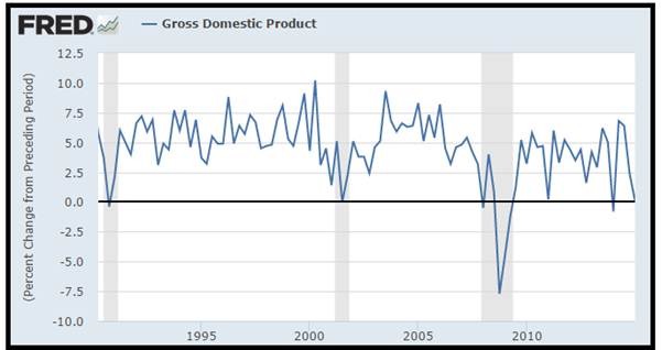 If you review Figure 2, you will observe that during Q1 2015, the US economy barely grew and under this scenario, it is improbable that the Federal Reserve will raise its benchmark short-term interest rate anytime soon.