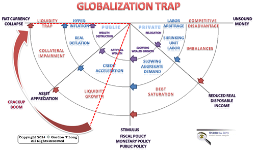 All of this has placed the world on a destructive path towards what can best be termed a "Globalization Trap" and eventually a Global Fiat Currency Crisis. The roadmap is easy to discern and quite evident if you actually study the sign posts without wearing Keynesian filtering glasses and apply a dose of common sense
