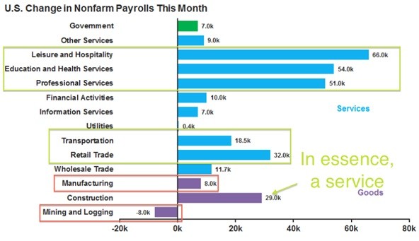 Leisure and Hospitality… America’s getting out there again, living it up and feeling secure with the gains that eventually came from the post-2012 period, after we got our first little inkling two years ago in January of 2013 with the Semiconductor Equipment ramp up.  I had no idea then how strong the economy would eventually become, but the massive services sectors in the US are now fully kicked in and enjoying the benefits.