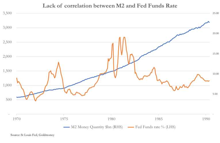 In other words, Keynes was saying interest is the price of money demanded by savers, but as we have seen in the chart above, changes in interest rates do not lead to changes in the quantity of money, so it cannot be right.