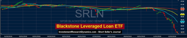 The chart above shows an ETF operated by Blackstone that invests in senior secured leveraged loans. Typically these loans fund private equity leveraged buyouts. But any highly leveraged company with a junk bond credit rating is a Wall Street candidate for this type of loan.