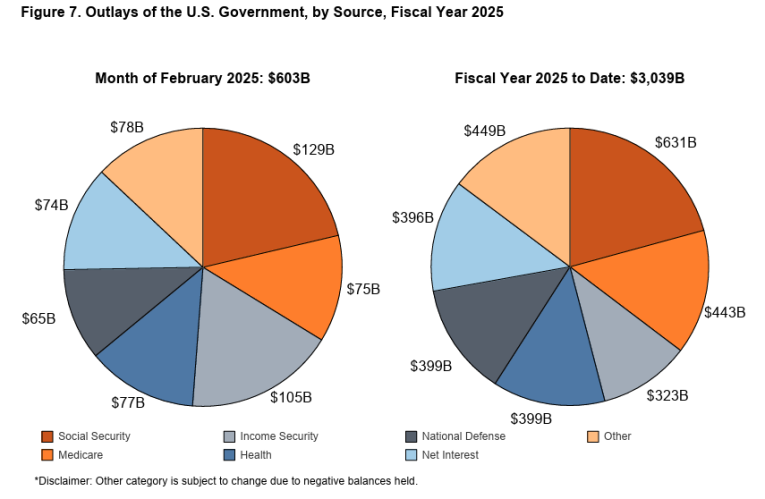 The Trump administration blew through $603.44 billion last month, a 6.3 percent increase over February 2024. That drove total spending in fiscal 2025 to $3.04 trillion, a 13.4 percent increase compared to the first five months of fiscal 2024.