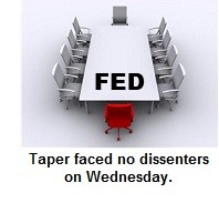It was the first meeting without a dissent since June 2011, showing the tapering strategy has brought together policy makers concerned the Fed’s record $4.1 trillion balance sheet risks causing asset price bubbles with those who, like Vice Chairman Yellen, say more needs to be done to reduce unemployment. “The Fed is staying the course,” said Guy Berger, an economist at RBS Securities Inc. in Stamford, Connecticut. “The hurdle for backing away from the implicit stair-step taper that they’ve suggested, which we view as roughly $10 billion per month, and winding down the program in September, is pretty high.”