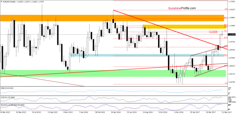 (…) EUR/USD reached upside targets as we had expected. Although this is a bullish development, we should keep in mind that daily and weekly indicators are overbought and very close to generating sell signal, which increases the probability of reversal and lower values of EUR/USD in the coming days.