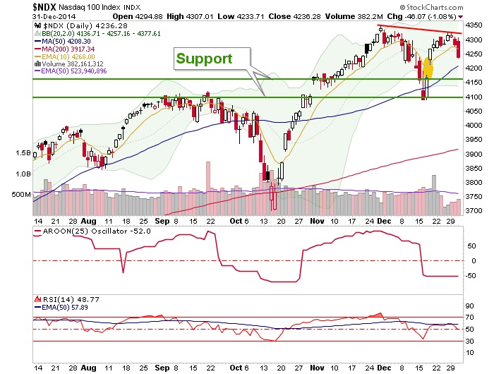 It looked like a few rats tried to jump ship as the bell rang on 2014. But it is hard to trust any one day or week as a guide during the holidays…so we can just call it what it was, a down week within a general US market uptrend.