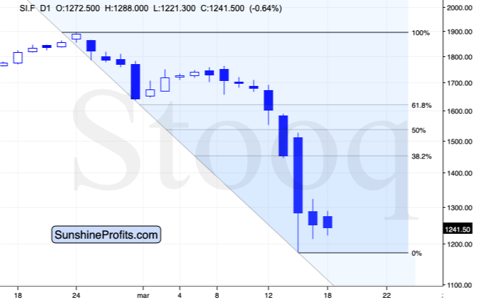 Also, we would like to take this opportunity to explain why we are aiming to profit on miners’ rebound only. It’s not because we’re not forecasting gold or silver at (temporarily) higher prices. The corrective upswing is likely to take place, and it seems that it’s already in progress. The point is that miners are usually the first to rally after a bottom, and they became ridiculously oversold in the short run recently, which made their run-up most likely and created the most favorable risk to reward setup. That’s why our focus is over here right now. There will be many times, when diversification between gold, silver, and miners is the way to go, but right now, concentrating on the miners seems to be a better choice. This choice proved to be very lucrative over the last few days (especially that we entered the long positions in the miners in the final 25 minutes of Friday’s session, almost right at the intraday low).