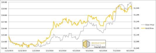 Read on for the only the only true picture of the supply and demand fundamentals for gold and silver. But first, here’s the graph of the metals’ prices.