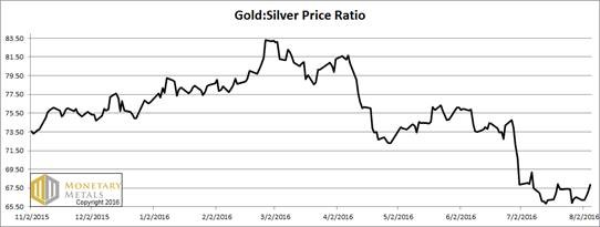 Next, this is a graph of the gold price measured in silver, otherwise known as the gold to silver ratio. The ratio rose this week.