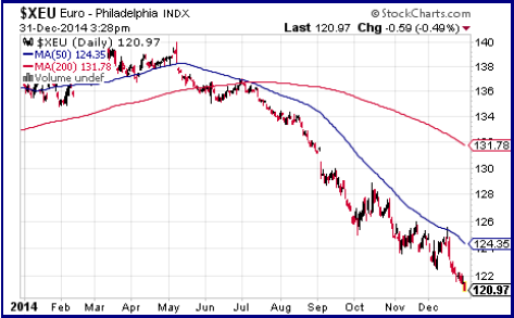 There is a lot of detail and nuance in the markets. After struggling to get it all into a manageable serving for you I’ve decided that’s not in our best interest. For that reason you should expect to see three issues (this one included) in quick succession that will deal with my outlook for different metals, regions and currencies. All will be in play against each other in 2015. In this issue I’m focusing on the Euro and oil, two things both the $US and gold react to on a day to day basis. The € may bounce after the ECB meeting but (as usual) we may get the pain before the gain.