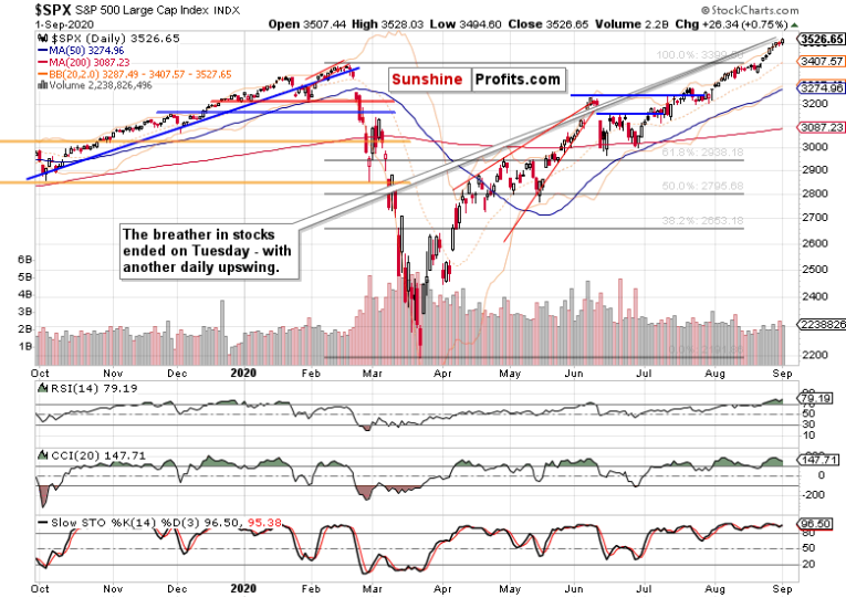 Summing up, the S&P500 market character hasn't changed, and it's still bullish. The case for a pause hasn't disappeared, but with solid credit market and tech performance, keeps being moved into the future. As the put/call ratio keeps sliding and sliding, it's my opinion that the pause is approaching – and today's ADP non-farm employment change could very well be the catalyst of such. Relatively shallow correction within a bull run, that is – which I, as a medium- to short-term trader, prefer to pass by and wait for a stronger setup to deploy capital again.