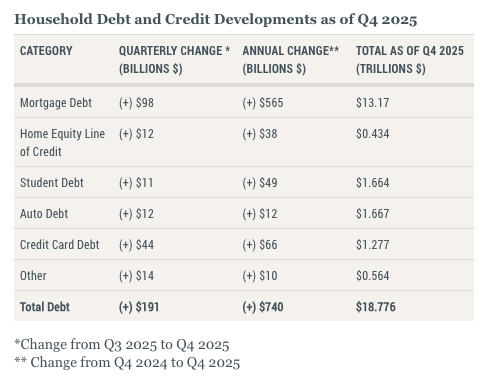 Household Debt Rose to a New Record High in Q4 2025