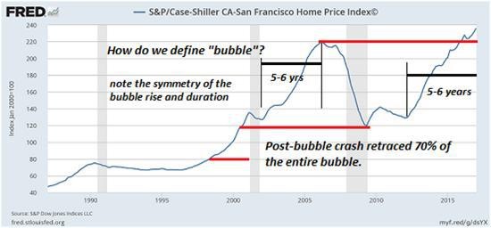 It seems housing bubbles take about 5 to 6 years to reach their bubble peaks, and about half that time to retrace much or all of the gains.