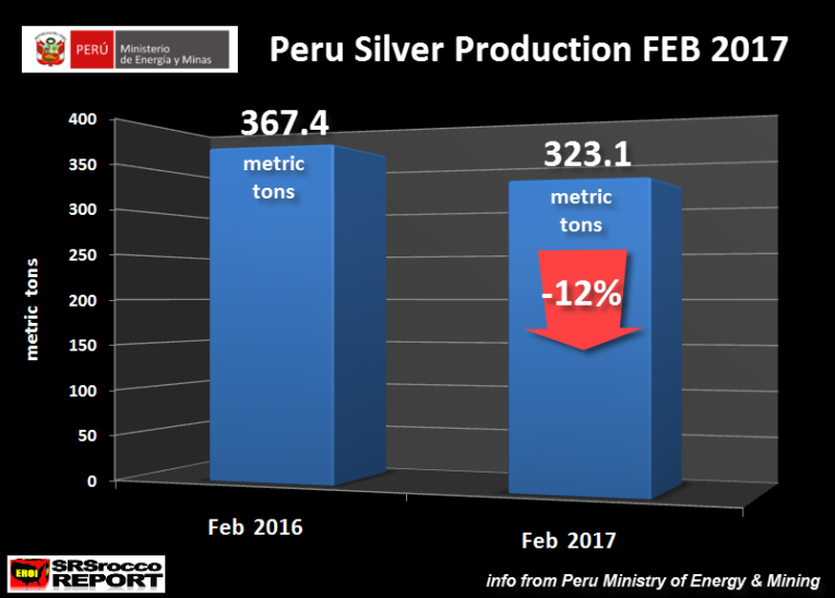 The Peru Ministry of Energy and Mining put out this brief explanation why their silver and gold production declined in February: